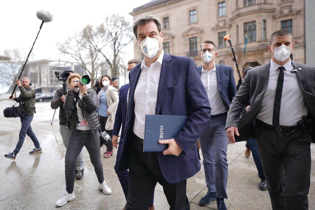 Eine mehrheit der unionsanhänger findet, markus söder (l) sollte armin laschet als kanzlerkandidaten ersetzen.